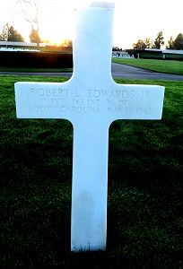 Pvt Robert L. Edwards Jr. worked at a textile factory before he enlisted at Fort Jackson, South Carolina on 6 September 1944.Source of information: André Koch, www.abmc.gov, www.wwiimemorial.com, www.archives.gov - WWII Enlistment Record, www.ancestry.com - Headstone and Interment Record / U.S. WWII Draft Cards Young Men / 1920/1930/1940 Census / South Carolina, U.S., births / 143rd-October-1944-to-end.pdf / https://36th.id.frb.io