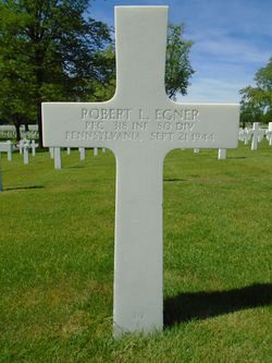 Pfc Robert L. Egner was employed at a hay drying establishment before he enlisted in Allentown, Pennsylvania on 21 September 1942.He was married to Clare Butchman on 28 April 1944.