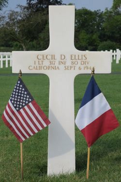 1st Lt Cecil D. Ellis attended 4 years of high school and was a miner of the Bonanza Mine Inc. in Oregon before he enlisted in Presido of Monterey on 9 March 1942.Source of information: Leo Minne, www.abmc.gov, www.wwiimemorial.com, www.ancestry.com - 1930/1940 Census / Headstone and Interment Record / U.S. Draft Cards Young Men, www.80thDivision.com, www.findagrave.com