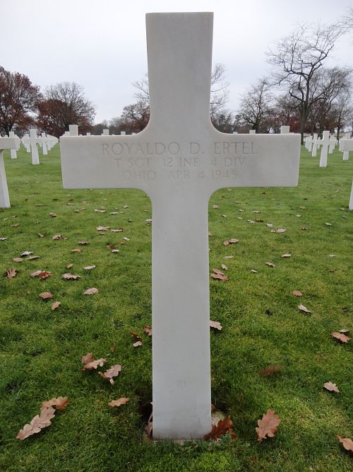 T/Sgt Royaldo D. Ertel attended high school for 3 years and worked at the Cincinnati Milling Machine Company before he enlisted in Cincinnati, Ohio on 3 December 1942.Source of information: Peter Schouteten, Company’s / 4ID After Action Reports, www.abmc.gov, www.wwiimemorial.com, www.archives.gov – WWII Enlistment Record, www.ancestry.com - Headstone and Interment Record / Down Through Time Family Tree, www.findagrave.com – Carolyn Deming Ertel, www.newspapers.com – The Cincinnati Enquirer Ohio - 24 April 1945