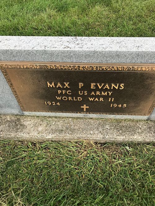 Pfc Max P. Evans worked on a farm before he enlisted in Camp Dodge Herrold, Iowa on 14 May 1943.He died of pneumococcal.