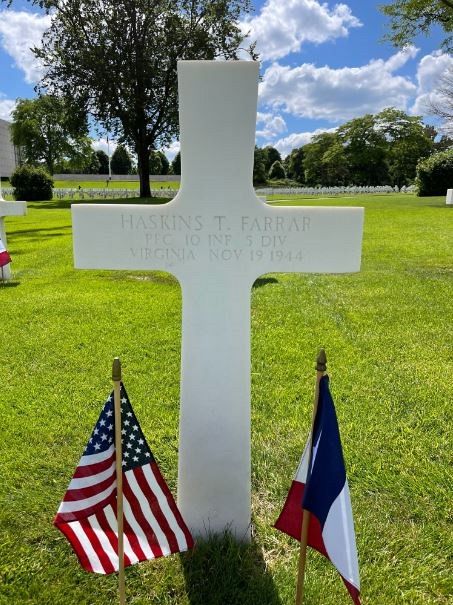 Pfc. Haskins T. Farrar worked in a foundry.He enlisted in Richmond, Virginia on 2 July 1943.