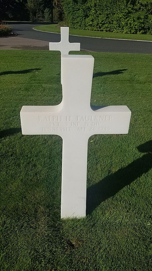 Pvt Ralph H. Faulkner attended high school for two years and worked as a veterinarian assistant before he enlisted at Fort Oglethorpe, Georgia on 21 July 1944.He was married to Mary Warwick on 28 February 1941. They had a first daughter on 17 July 1942, but she died within 12 hours after her birth.