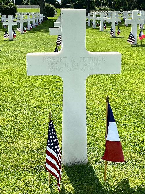 Sgt Robert A. Feebeck attended 3 years of high school and was the Vice President at Miami (Ohio) Gas Company.He enlisted in Cincinnati, Ohio on 24 April 1942. He served as a rifle and bayonet instructor before being sent overseas.
