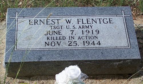 T/Sgt Ernest W. Flentge worked on a farm before he enlisted in Fort Sam Houston, Texas on 23 March 1942.He is remembered at the Salem Evangelical Lutheran Church Cemetery in Brenham, Washington County, Texas.