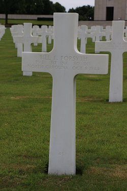 Pvt William F. Forsyth was a maintenance painter before he enlisted at Fort Bragg, North Carolina on 19 March 1944.He was reported seriously wounded in action during the attack on Hill 407 near Bratte, France on 8 October and brought to the 305th Medical Battalion Clearing Station, that was situated at the electric light plant in Millery at that time, where he died of his wounds.