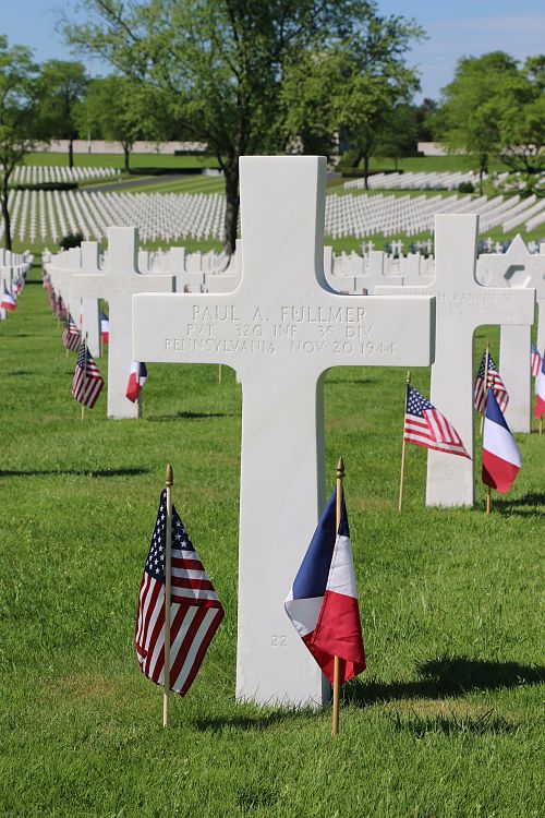 Pvt Paul A. Fullmer was a sales clerk before he enlisted in New Cumberland, Pennsylvania on 25 March 1943.He was first buried at the Temporary American Military Cemetery in Limey, France.