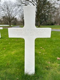 S/Sgt Thomas F. Gierlock was employed at the Wyan Cola Bottling Company before he enlisted.Source of information: Peter Schouteten, Kathy McDermott, www.abmc.gov, www.wwiimemorial.com, www.ancestry.com - Headstone and Interment Record / Lynn Rose Jensen Family Tree / U.S. WWII Draft Cards Young Men, www.63rdinfdiv.com