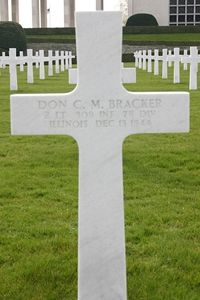 2nd Lt Don C. M. Bracker joined the U.S. Army Reserve as a private in Galesburg, Illinois on 23 May 1942. He attended college for 2 years and worked in an automobile factory before he joined the army.He was killed on the first day he went into combat.