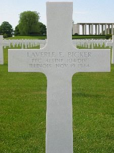Laverle Bicker was employed at the Savanna ordnance depot before he enlisted on 19 November 1942 and was sent overseas in the latter part of August 1944.Source of information: Raf Dyckmans, Peter Schouteten, Astrid van Erp, www.104infdiv.org, National WWII Memorial, National Archives, www.findagrave.com - D. Frederick Birely, www.ancestry.com - U.S., Headstone and Interment Record, www.myheritage.nl - Freeport Journal-Standard