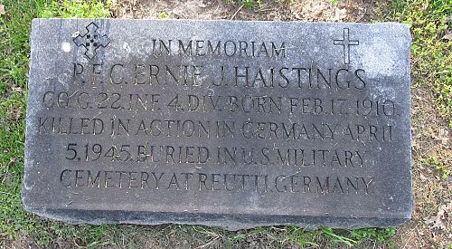 Pfc Ernie J. Haistings worked on a farm before he enlisted in Scott Field, Illinois on 27 March 1942.He was first buried at the German War Cemetery in Reutti, Germany.