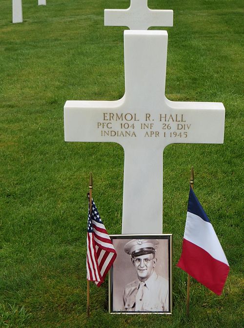 Pfc Ermol R. Hall attended high school for one year and worked on the family farm before he enlisted in Indianapolis, Indiana on 21 January 1944. He was sent overseas in August 1944.