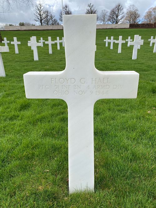 Pfc Floyd G. Hall enlisted in Cleveland, Ohio on 23 September 1943.He was first buried at the Temporary American Military Cemetery of Limey, France.