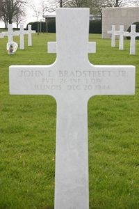 Pvt John E. Bradstreet Jr. completed three years of high school before he enlisted in Los Angeles, California on 28 May 1943.Source of information: Peter Schouteten, Raf Dyckmans, Carla Mans, Kathy McDermott, www.wwiimemorial.com, www.archives.gov, www.ancestry.com - U.S. WWII Draft Cards Young Men / 1930 Census, www.history.army.mil/html/bookshelves/resmat/ww2list.html, Culver Alumnus - March 1945