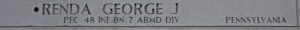 Pvt Renda graduated from Wilkinsburg High School in 1939 and was employed by the Westinghouse Electric Corp. in East Pittsburgh.He enlisted in 1942 and was sent overseas in March 1944.