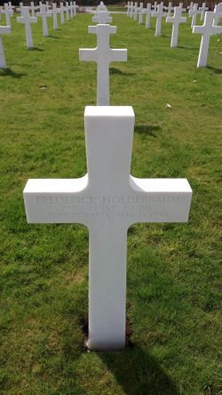 Pfc Frederick Holderbaum graduated from North Irwin High School and was employed at the Penna Railroad before he volunteered for the Army of the United States in Pittsburg, Pennsylvania on 17 March 1942. He was sent overseas in January 1944.Source of information: Leo Minne, www.abmc.gov, www.wwiimemorial.com, www.ancestry.com – 1930/1940 Census / U.S. Headstone and Interment Record / Pennsylvania Veteran Compensation Application, www.80thdivision.com