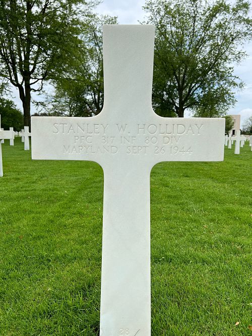 Pfc Stanley W. Holliday was a hospital attendant before he enlisted in Baltimore, Maryland on 2 September 1941.Source of information: Leo Minne, www.abmc.gov, www.wwiimemorial.com, www.ancestry.com - 1930/1940 Census / U.S. Headstone and Interment Record / Loy –Loyd-Lloyd Family Tree / U.S. Draft Cards Young Men, www.80thDivision.com