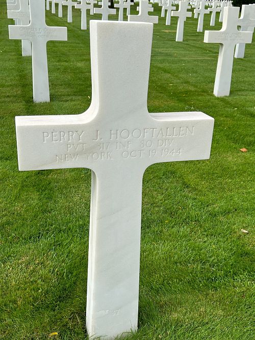 Pvt Perry J. Hooftallen attended high school for four years and was employed as an assistant electrician at Bayless Pulp and Paper Co. before he enlisted in New Cumberland, Pennsylvania on 16 March 1944.He was reported missing in action on 9 October 1944.