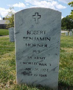 Pvt Robert B. Horner was a chauffeur before he enlisted in Clarksburg, West Virginia on 28 August 1943.He is remembered at Arlington National Cemetery.