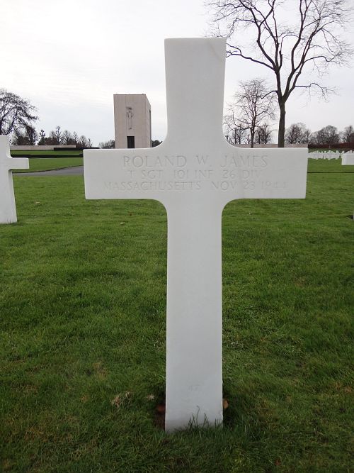 T/Sgt Roland W. James attended high school for four years and was a janitor and sexton before he enlisted in Boston, Massachusetts on 1 March 1941.He was first buried at the Temporary American Military Cemetery in Limey, France.