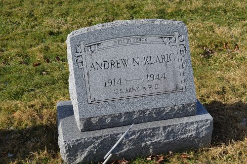 Sgt Andrew N. Klaric attended high school for four years and was employed at the Gilpin Coal Company before he enlisted in Pittsburgh, Pennsylvania on 17 February 1943.He is also remembered at the Saint Catherine's Cemetery in Leechburg, Armstrong County, Pennsylvania.