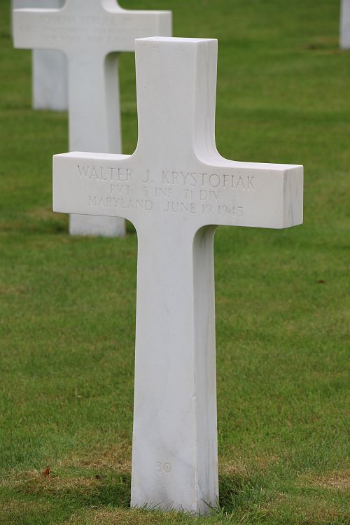 Pvt Walter J. Krystofiak worked at the Union Ship Yard in Fairfield, Maryland before he enlisted in Baltimore, Maryland on 28 November 1944.Source of information: Nick Lieten, www.abmc.gov, www.wwiimemorial.com, www.archives.gov, www.ancestry.com - 1920/1930/1940 Census / Headstone and Interment Record, www.fold3.com - WWII Registration Card