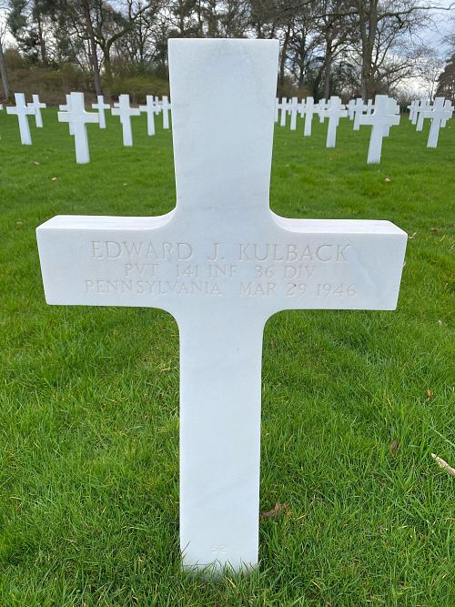 Pvt Edward J. Kulback enlisted in Pittsburgh, Pennsylvania on 17 February 1943.He was officially declared dead one day and one year after he was reported missing in action. His remains were later recovered.