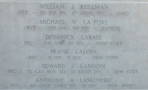 Pfc Frank Lalopa graduated from East Rochester High School in 1942 and worked in a factory for metal products.He enlisted in Rochester, New York on 24 February 1943 and went overseas after 14 weeks' training. Pfc Lalopa spent five months in Italy before going to England.