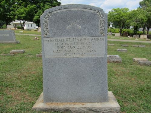 Pfc William B. Lamkin attended high school for 2 years and worked on a farm before he enlisted in Roanoke, Virginia on 22 October 1942.He was first buried at the Temporary American Military Cemetery in Limey, France.