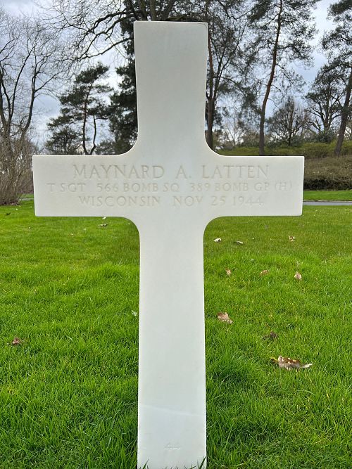 By going back to this area in May of 1945, I found out that Sgts Hodges and Latten had been in hiding with a French civilian by the name of Braining in the village of Wilwisheim, Alsace, until 23 September 1944. Then they put on civilian clothes and were taken by a Mr. Lux to Saverne where a Charles Gerber took them north to a Clergyman or Pasteur in the village of Volksburg. This Pasteur was later arrested by the Germans. A Monsieur le Pasteur Fricker of Tiefenbach, a little village near Volksburg said they were caught by the S.S. and put in the concentration camp of Chelmek. Where he died on 25 November 1944.