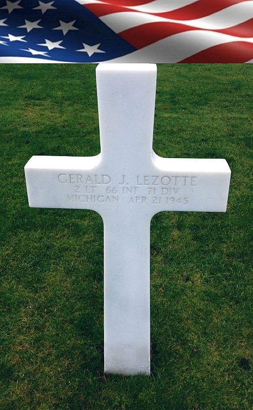 2nd Lt Gerald J. Lezotte attended high school for four years and worked at the Woodall Industry before he enlisted in Detroit, Michigan on 5 May 1941.Source of information: Nick Lieten, www.abmc.gov, www.wwiimemorial.com, www.archives.gov, www.ancestry.com - Headstone and Interment Record / 1920/1930/1940 Census / Family Trees, www.fold3.com - WWII Registration Card, The History of the 71st Infantry Division