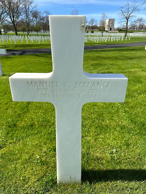 Pvt Manuel C. Lozano enlisted in Houston, Texas on 21 January 1941.Source of information: André Koch, www.abmc.gov, www.wwiimemorial.com, www.archives.gov – WWII Enlistment Record, www.ancestry.com - Headstone and Interment Records / U.S. WWII Draft Cards Young Men 1940-1947 / U.S. Border Crossings from Mexico to U.S. 1895-1964, https://36th-id.frb.io/, 142ndaar-.pdf