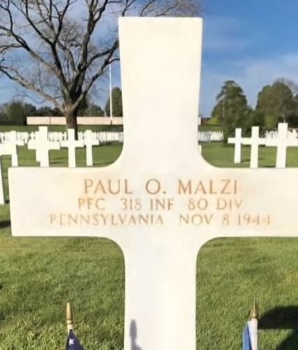 Pfc Paul O. Malzi was a chauffeur before he enlisted at Fort George G. Meade, Maryland on 17 March 1944. He was sent overseas on 27 August 1944.Source of information: Leo Minne, www.abmc.gov, www.wwiimemorial.com, www.ancestry.com - 1920/1930/1940 Census / U.S. Headstone and Interment Record / Markowitz Family Tree / Pennsylvania Veteran Compensation Applications / U.S. Draft Cards Young Men, www.80thdivision.com