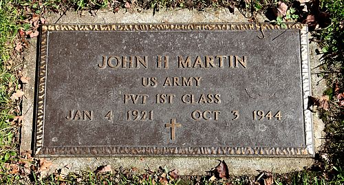 Pfc John H. Martin worked on a farm before he enlisted in Huntington, West Virginia on 19 June 1942.He was first buried at the Temporary American Military Cemetery in Andilly, France.