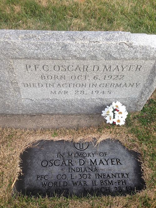 Pfc Oscar D. Mayer attended high school for 2 years before he enlisted in Evansville, Indiana on 7 December 1942.He died as a prisoner of war in Stalag 9B.