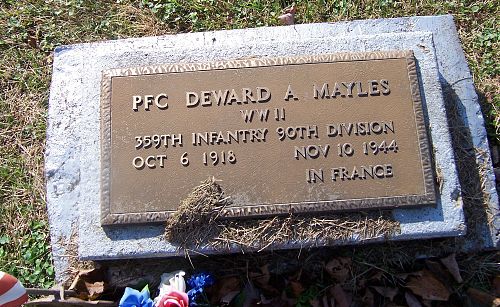 Pfc Deward A. Mayles worked on a farm before he enlisted in Clarksburg, West Virginia on 11 May 1943.He was first buried at the Temporary American Military Cemetery in Limey, France.