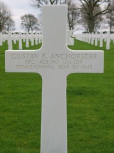 Pfc Gustav F. Anchorstar graduated from Schuykill Haven High School in 1942.He enlisted in Allentown, Pennsylvania on 30 April 1943.