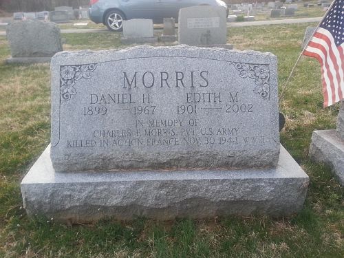Pvt Charles F. Morris attended high school for 4 years before he enlisted in New Cumberland, Pennsylvania on 10 April 1944.He is remembered at the Great Valley Presbyterian Cemetery in Malvern, Chester County, Pennsylvania.