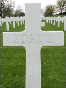 Capt Hackard, commander of B Company, was with Lt Spaans at the start of an attack and lost contact with him about 1 pm. He found his body at 6.30 pm, that same day.Source of information: Peter Schouteten, Carla Mans, www.wwiimemorial.com, www.archives.gov, www.ancestry.com - U.S. WWII Draft Cards Young Men, http://www.in-honored-glory.info/