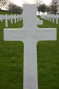 Frederick Villani was laying communications wire in the Hürtgen Forest when he was struck in the back and killed instantly by shrapnel from a German artillery shell.Source of information: Peter Schouteten, www.wwiimemorial.com, www.archives.gov, http://www.in-honored-glory.info/, www.ancestry.com