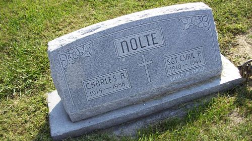 Sgt Cyril P. Nolte was first buried at the Temporary American Military Cemetery in Andilly, France.He is remembered at the Saints Peter and Paul Cemetery in Seneca, Nemaha County, Kansas.