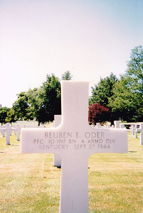 Pfc Reuben E. Oder enlisted in Cincinati, Ohio on 12 january 1944.He was first buried at the Temporary American Military Cemetery of Limey, France.