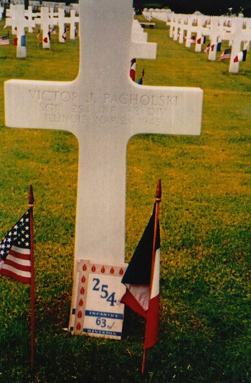 Sgt Victor J. Pacholski attended high school for two years before he enlisted in Chicago, Illinois on 26 May 1942.Source of information: Peter Schouteten, www.abmc.gov, www.wwiimemorial.com, www.archives.gov – WWII Enlistment Record, www.ancestry.com - Headstone and Interment Record / U.S. WWII Draft Cards Young Men / Pacholski Johnson Family Tree, www.63rdinfdiv.com, www.findagrave.com