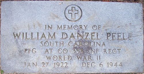 Pfc William D. Peele was a waiter before he enlisted in Richmond, Virginia on 10 December 1942.He is remembered at the Mary Love Cemetery in Hamlet, Richmond County, North Carolina.