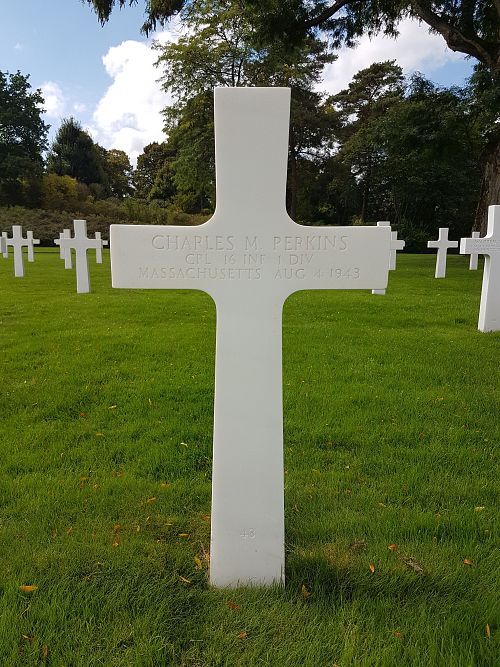 Cpl Charles M. Perkins was a machinist before he enlisted at Fort Devens, Massachusetts on 25 February 1942.He was first buried at the Temporary American Military Cemetery in Mount Soprano, Italy.