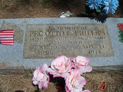 Pfc Otto L. Phillips worked on a farm before he enlisted on 4 April 1942.He was first buried at the Temporary American Military Cemetery in Limey, France.