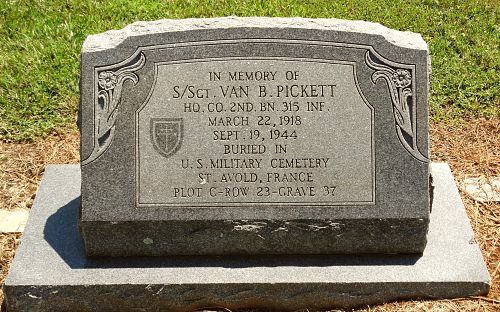 S/Sgt Vann B. Pickett attended high school for three years and was employed at a Texaco Service Station before he enlisted at Fort Bragg, North Carolina on 15 June 1942.He was killed by small arms fire to his stomach and thigh.