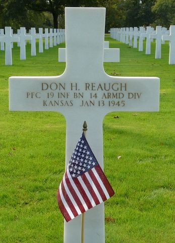 Pfc Don H. Reaugh attended college for one year before he enlisted at Fort Leavensworth, Kansas on 25 February 1943.He was sent overseas in October 1944.