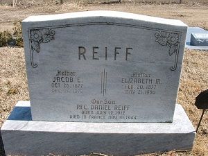 Pfc Daniel Reiff is remembered at the Temple Church Cemetery in Gypsum, Saline County, Kansas.He was first buried at Temporary American Military Cemetery Limey, France.