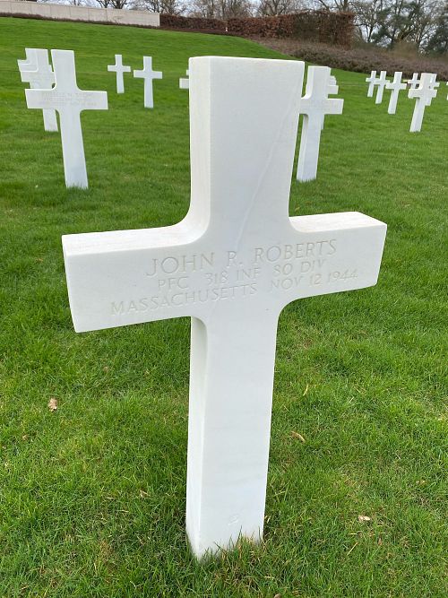 Pfc John R. Roberts attended high school for two years and was a production worker in a shoe company before he joined the Regular Army in the Coast Artillery Corps on 13 July 1940.Pfc Roberts was fatally wounded by artillery shell fragments in the thorax.